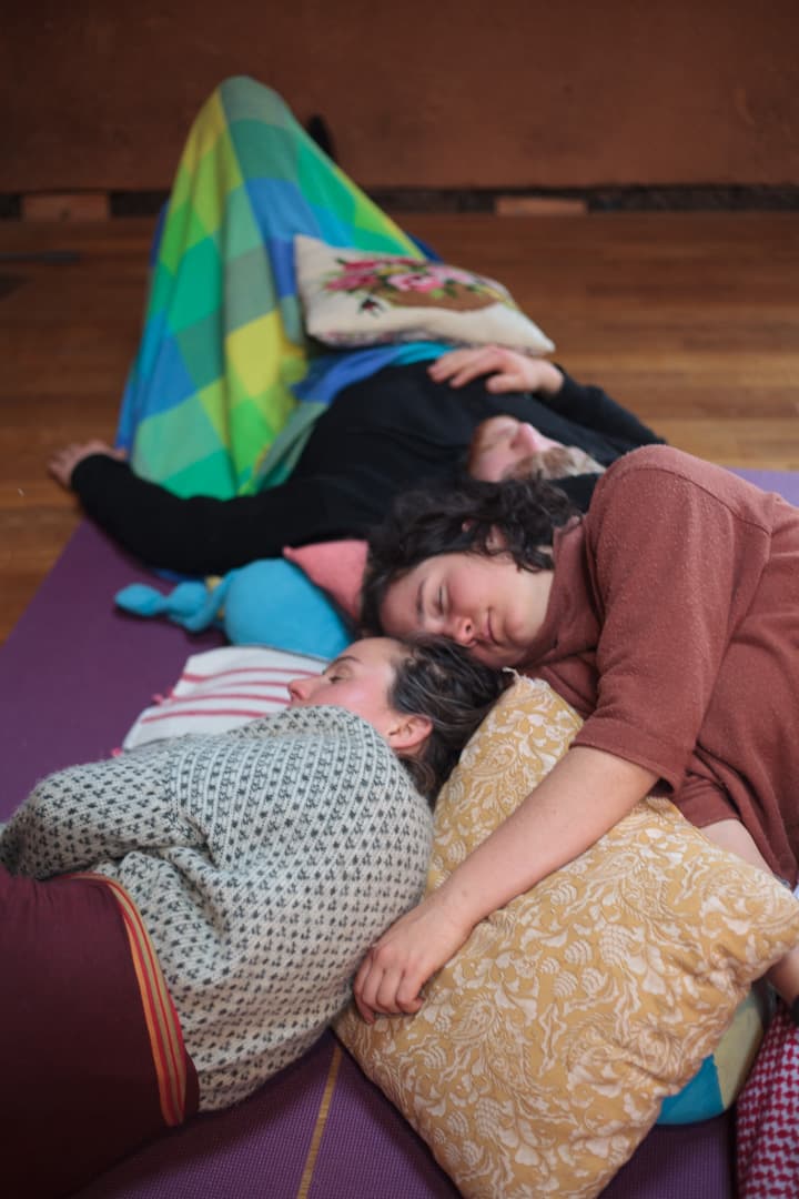 The five of us embodied care and resources; we explored whether we could take care of ourselves while taking care of one another. We sensed and offered care as breathing space, as attention, as time, as rest, as dancing together. We welcomed people and explored what it meant to share what was already there.